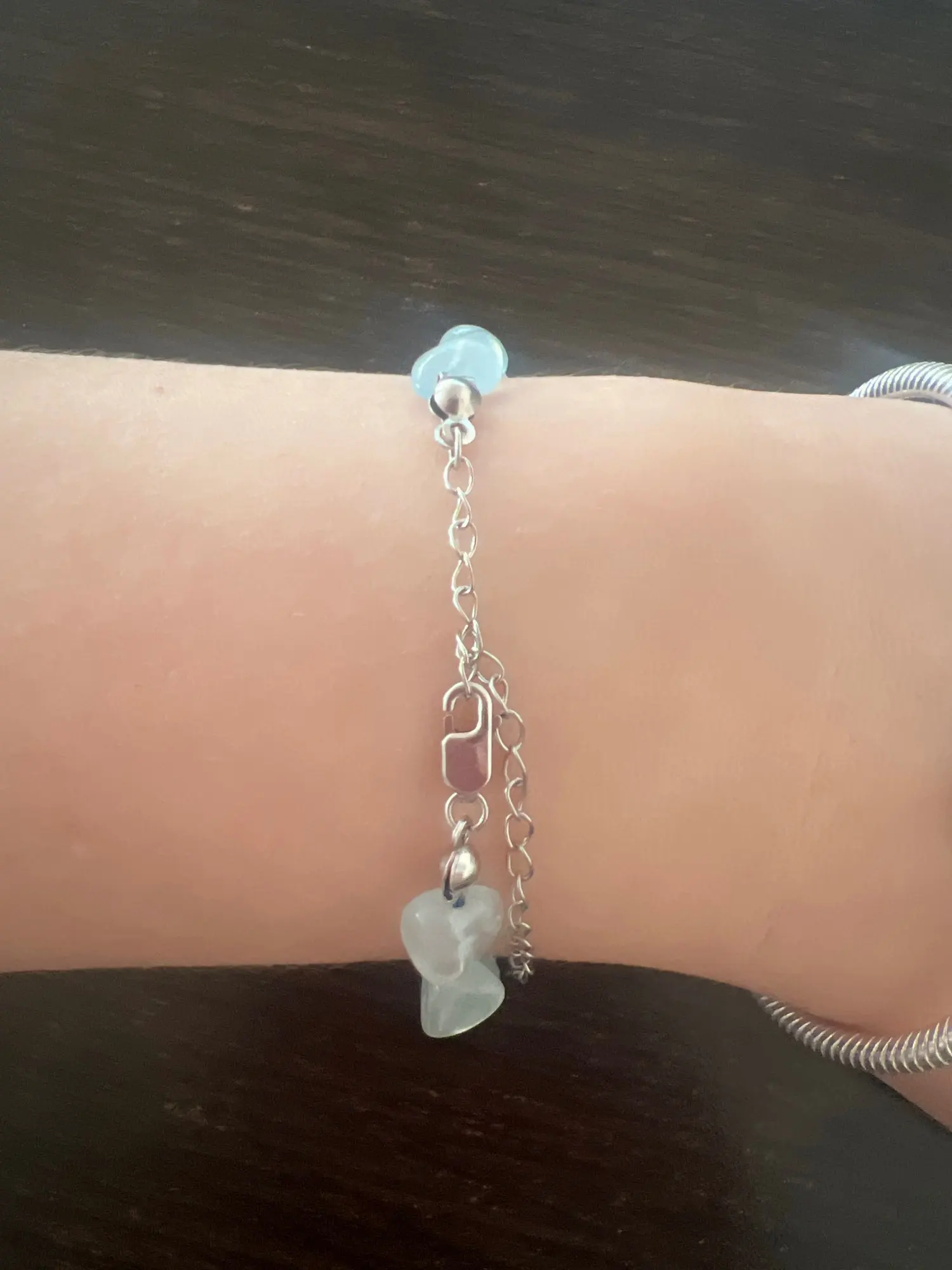 925 Sterling Silver Blue Crystal Beaded Bracelet, Handmade Adjustable Dainty Jewelry Gift