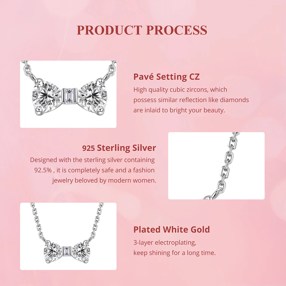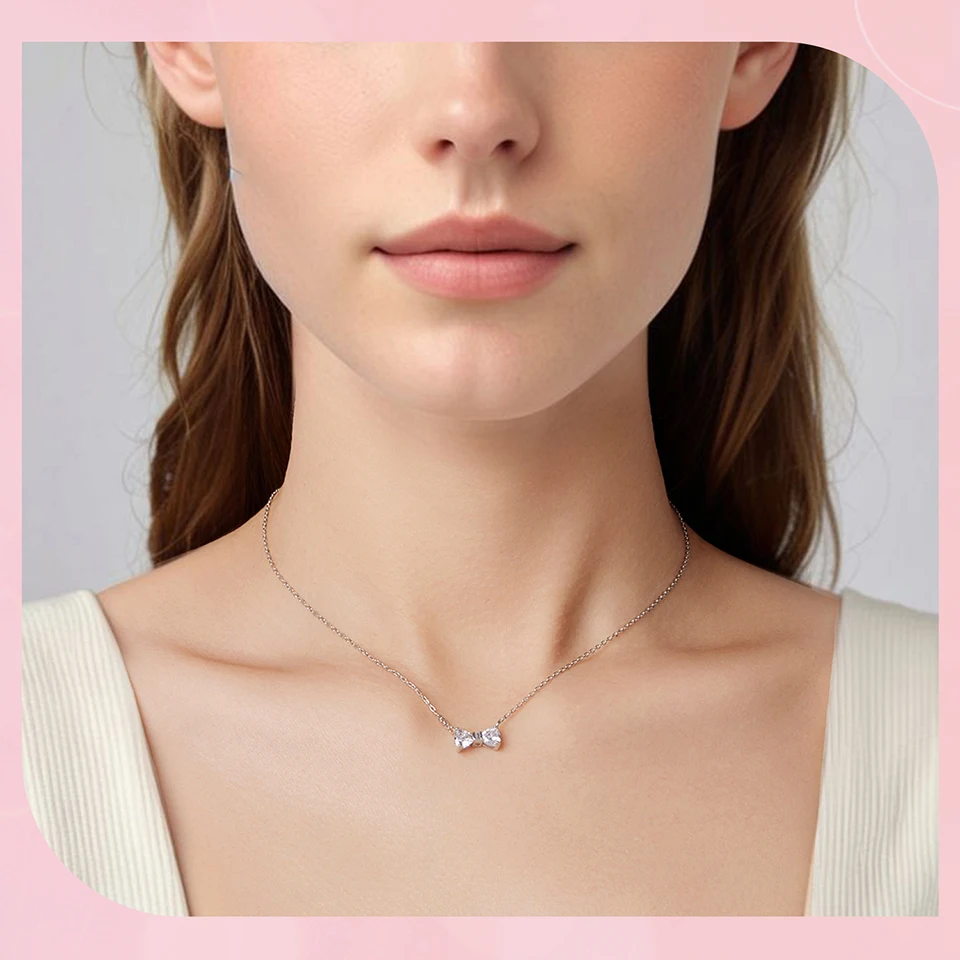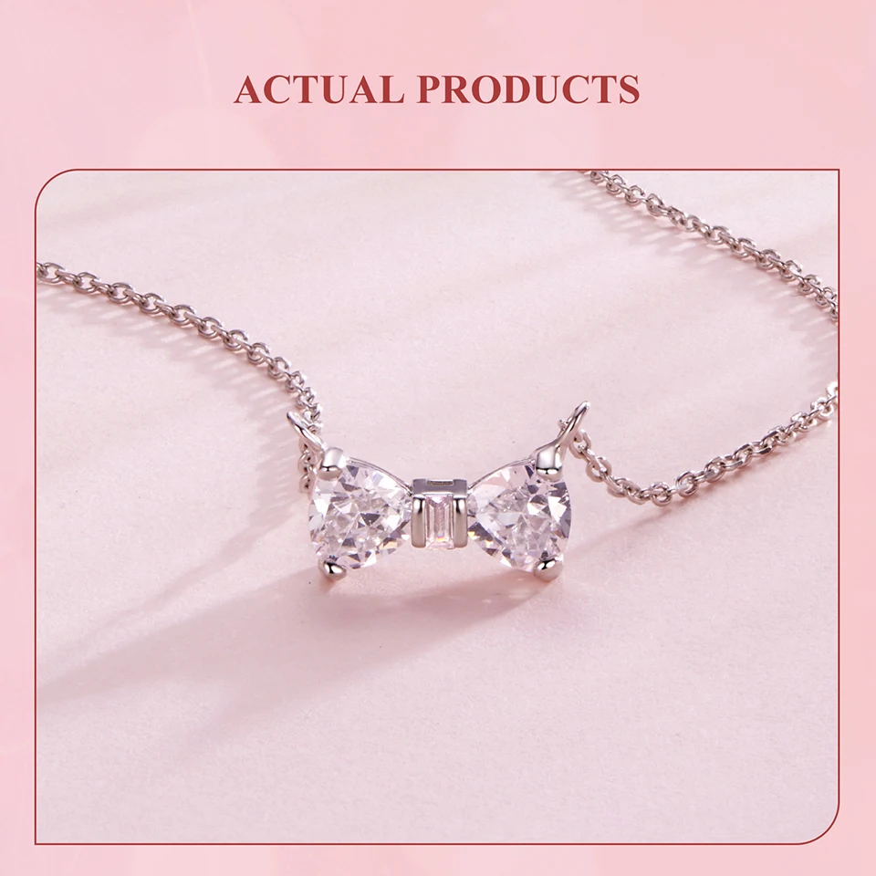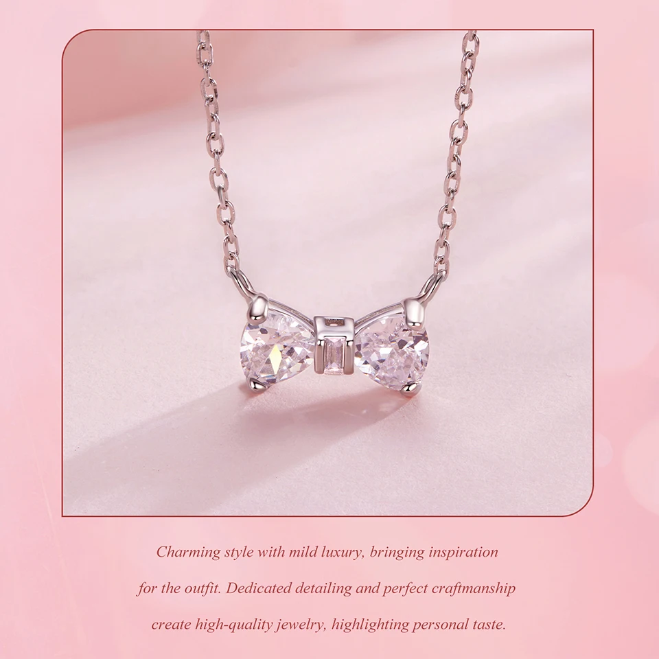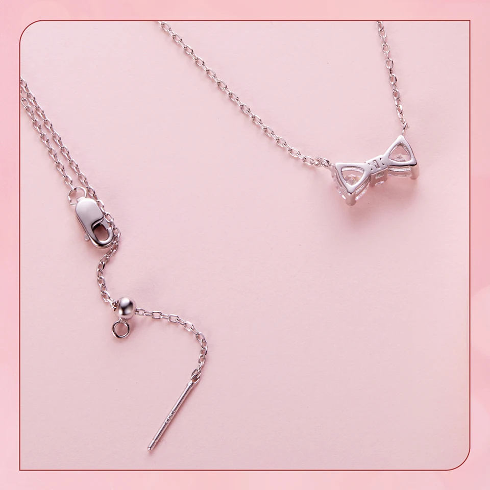 925 Sterling Silver Bow Pendant Necklace – Full Zircon Sparkle