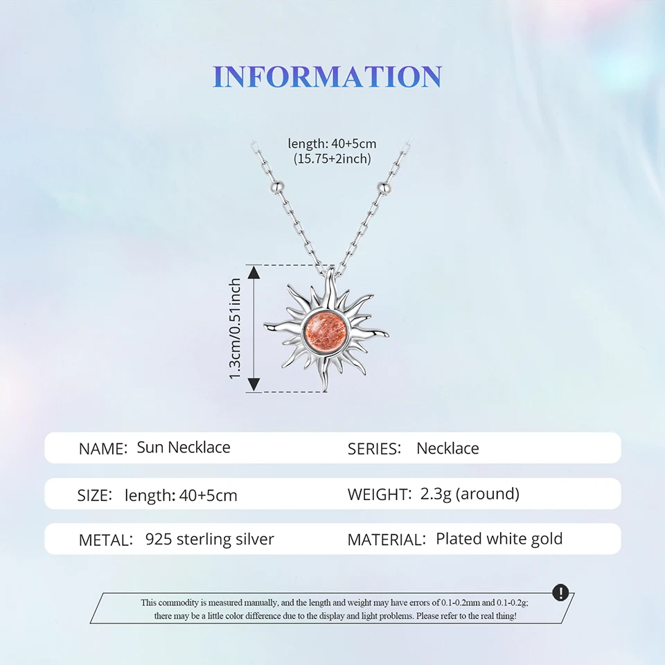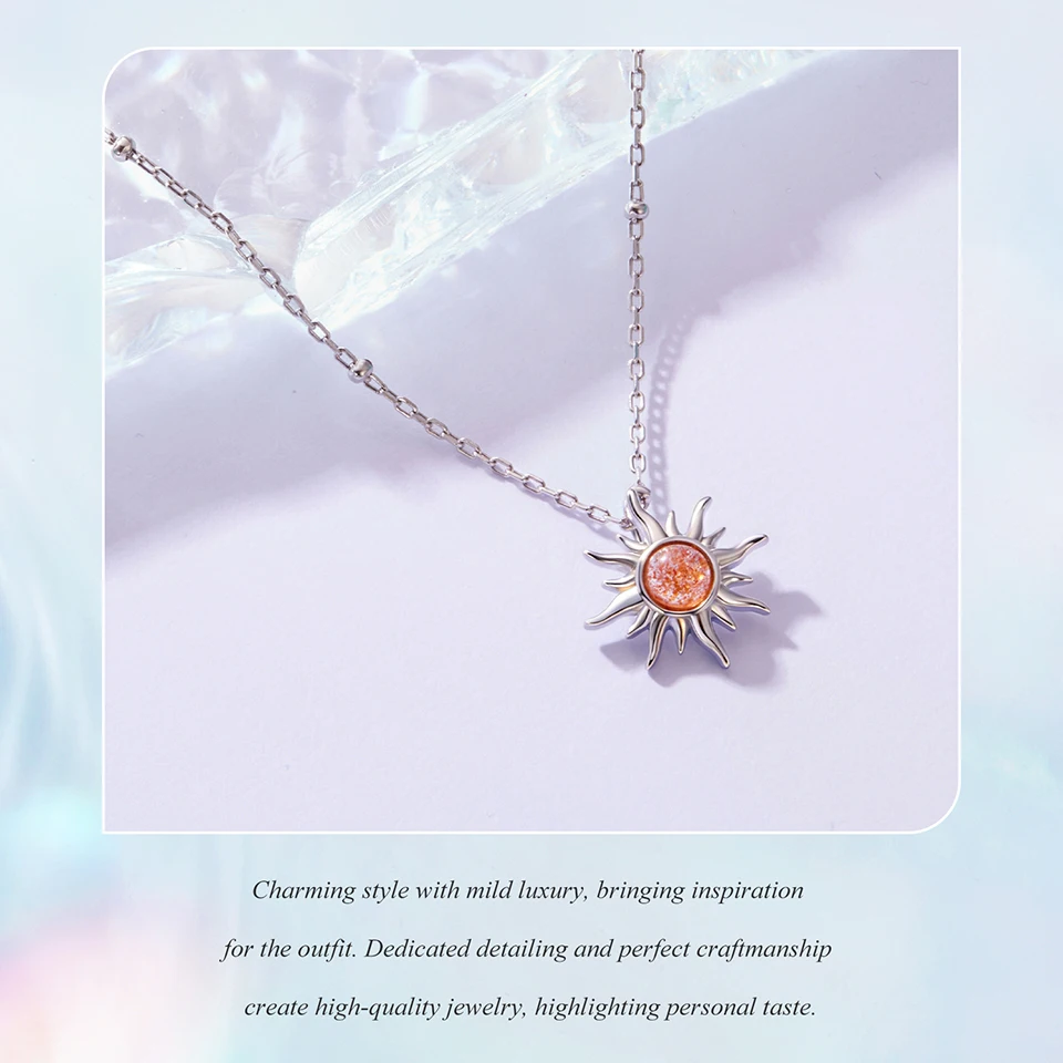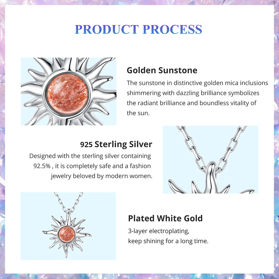 925 Sterling Silver Sunstone Sun Pendant Necklace