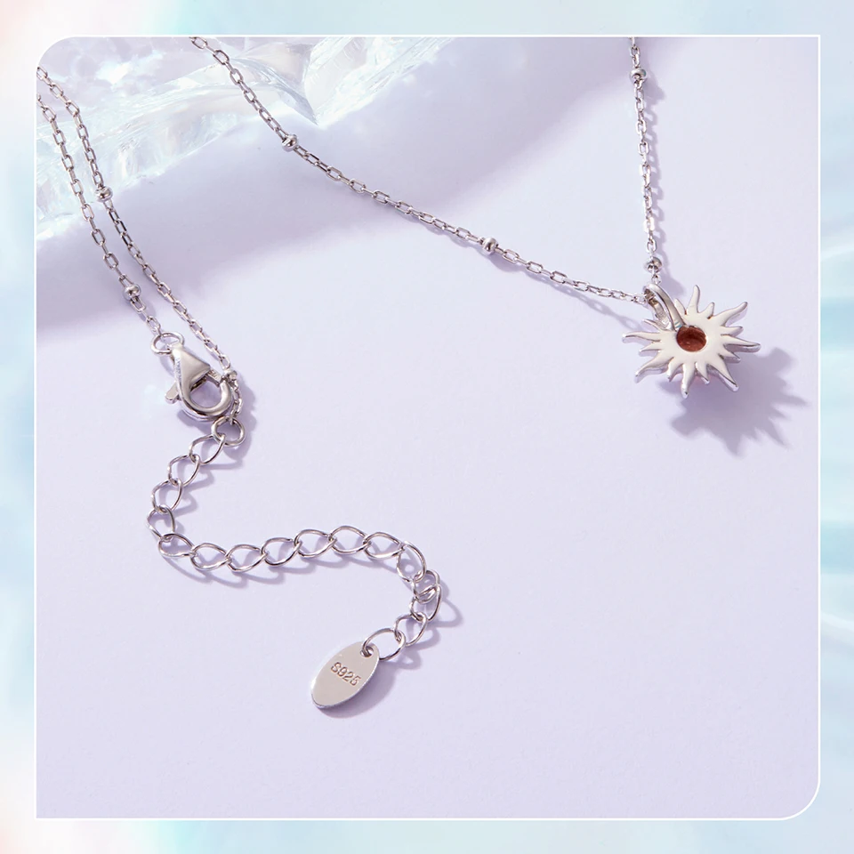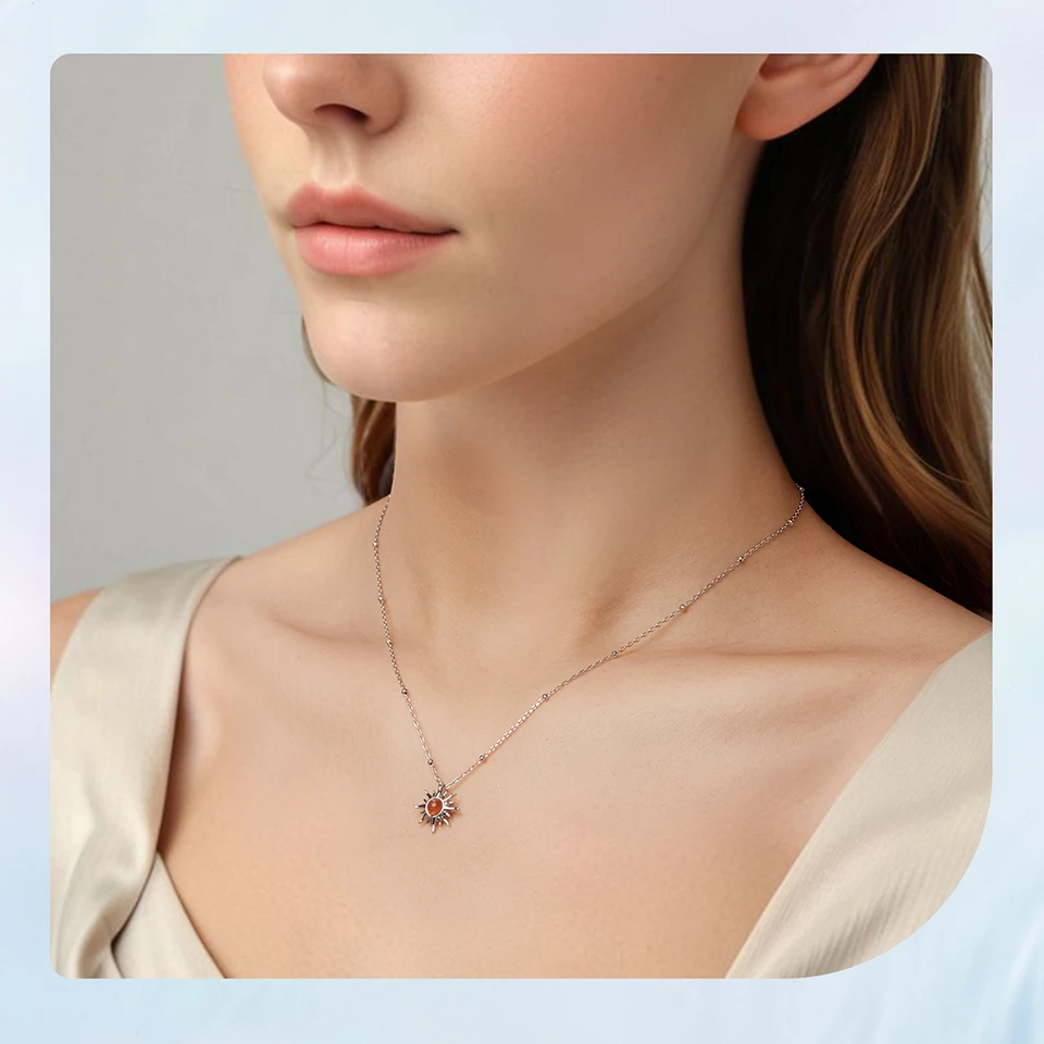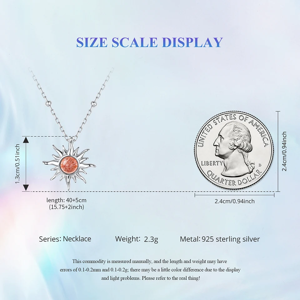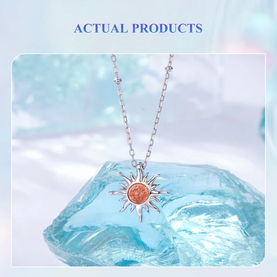 925 Sterling Silver Sunstone Sun Pendant Necklace
